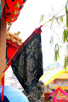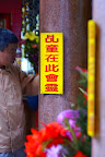 我們去參訪的時候雖然天候不佳,天空下著大雨,可是來此寺廟參加慶典的人絡繹不絕,我躲到廟裡面,只看到要遊行的人進進出出,有些人整裝待發,阿嬤帶著好像報馬仔的帽子,老老少少共同參與。我則是被在旁邊摺蓮花座的阿嬤吸引,於是也開始幫忙摺起紙來,摺了五六個之後,阿嬤跟我說我摺線摺錯了,雖然外觀一樣,可是就是不對,我只好重來。想想摺這些蓮花座雖然就要燒掉,可是還是要一步一步來,心存恭敬,佛祖自然會保佑。