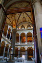 哈斯大樓是1990年完工的,要在這個附近都是巴洛克的華麗建築來媲美,唯有用比較特別的方法,若是從上到下打量這個建築,實在是非常的怪異,不但是不規則狀,而且有大理石、花崗岩,又有不鏽鋼、金與玻璃、霓虹燈等等,你想得到的元素都給它黏上去就是了,而入口就是右邊那個圓圓的像是天井的地方。
