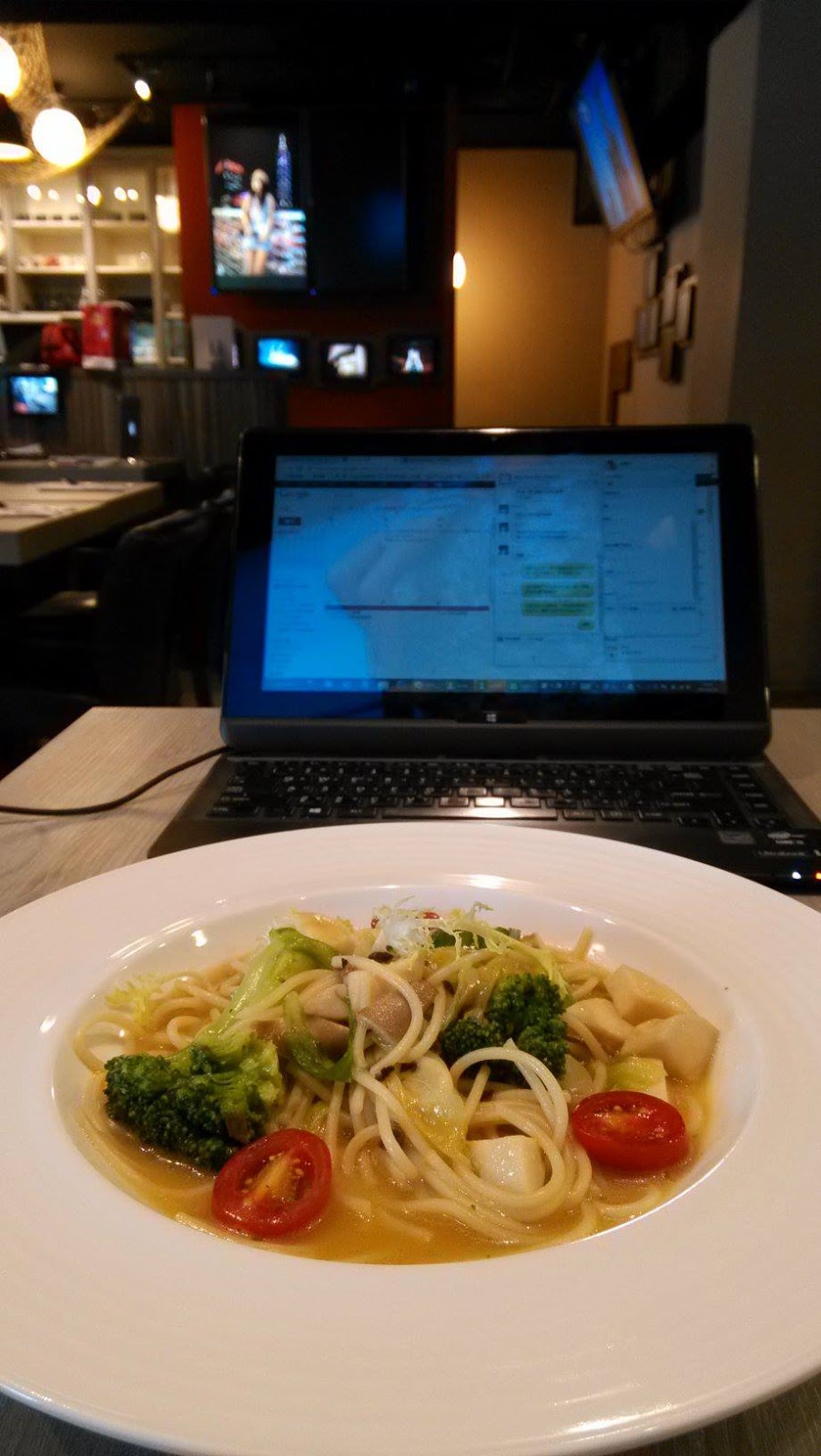 中午的熱門時段,大家來用完餐,聊聊天,又回去上班 — 在 Alice Caf'e Book