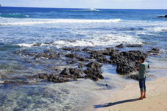 某旅館的摩艾像,朝向海,假的。據說全島只有一處的摩艾像朝著海,傳說玻里尼西亞人就是從這邊登陸的。