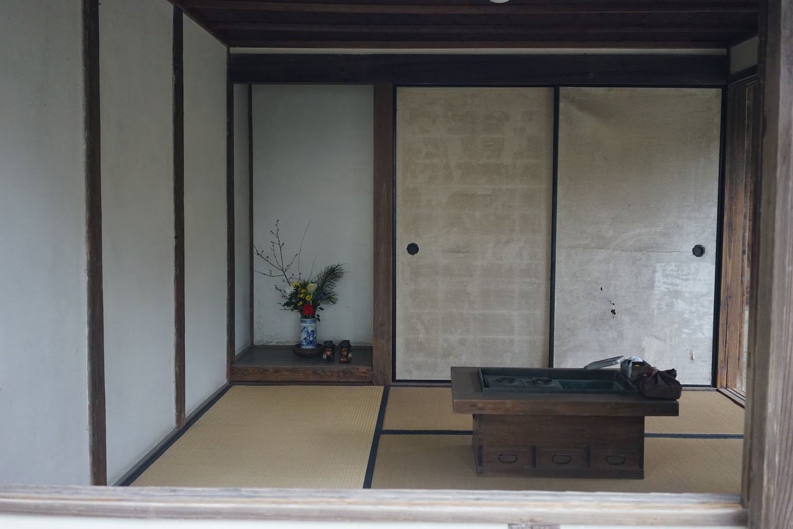 旁邊有掛農具的地方,好像後來的茶屋外也有掛武士刀的地方