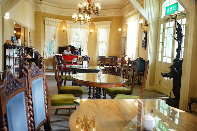 屋內是英國裝飾,也強調英式下午茶,有不少情侶過來,正好有一堆老人家在寫俳句,後來再討論,穿著非常正式。