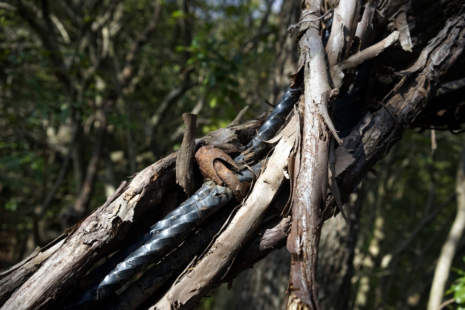 主要是鋼索,外包藤蔓,所以算是假古蹟吧?