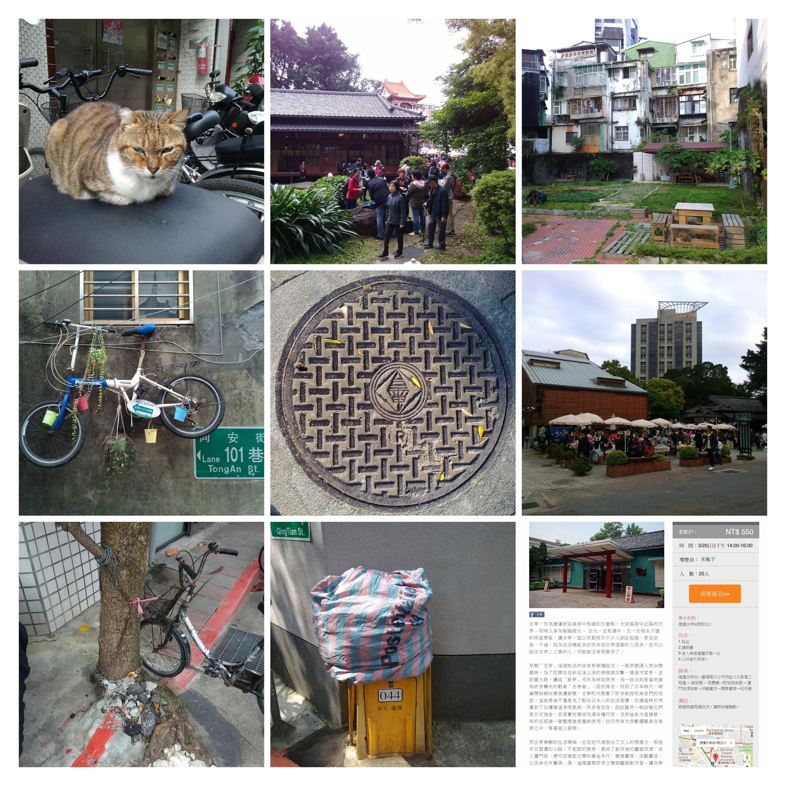 今天在泰順街暖時光門口遇到了青田街的鄰居大哥,他說他最大的興趣就是"無事",經常騎腳踏車在四周出沒,時常在可抽菸的戶外空間只喝著同樣一種風味的咖啡,若不熟識他,可能會覺得他過著無事枯燥乏味的生活,可是交談了好幾回,他也有他自己的興趣,女朋友在國外國內跑來跑去,而他甘之如飴的騎著他的哈雷機車,雖然沒有經常長途騎行,但是對於骨董車極有興趣。