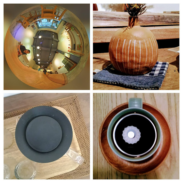 進了咖啡館,剛開門經常是我一個人奢侈的占用這樣的空間,好聽的音樂,圓圓的燈飾,跟幾天前不太相同,牆面上少了一些植物,詢問之後原來是幾天前有人包場辦活動自己貼上去的,活動結束後就移除了,今天這樣比較簡單乾淨。