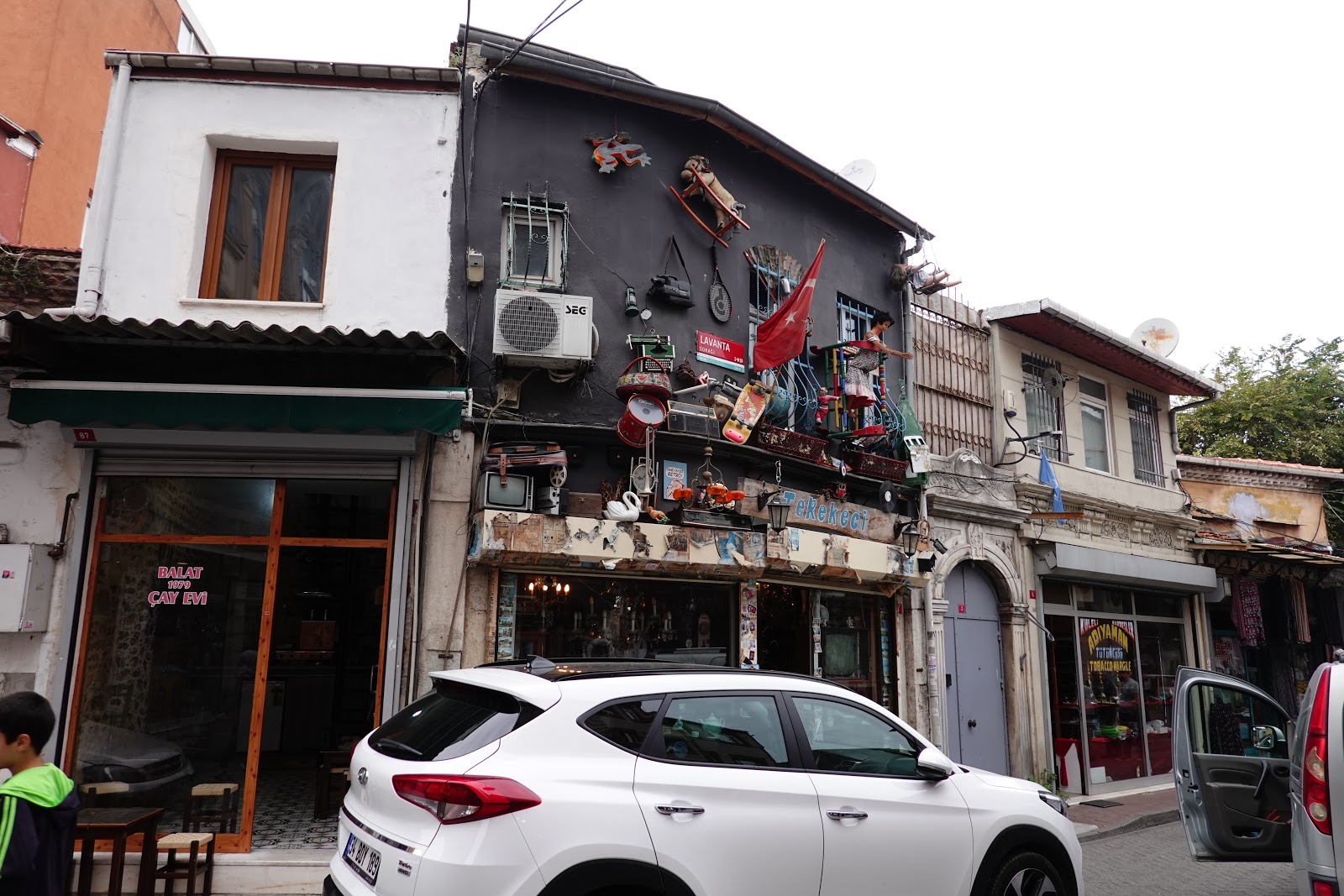 從紫衣貴族宮步行下來,經過了有高牆的猶太教堂,牆上佈滿了金屬刺網,正式進入了巴拉特區,五顏六色的裝扮,各式各樣的建築元素出現在我眼前,有現代建築材質,也有古典元素,當然不少呈現廢墟狀態,有清真寺、猶太教堂也有基督教堂。冷不防會有一顆球從身邊飛過,不小心踏入車道,又會有驚嚇的喇叭聲,不時的有許多車子從身旁呼嘯而過,貨車、計程車、名貴跑車都有,地上鋪著排列整齊的石頭路,車子經過會發出石塊互相敲擊的聲音。