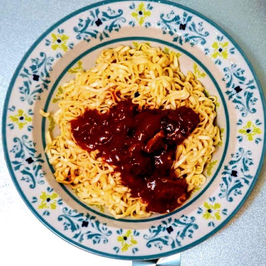 20190123 No.13 熱騰騰稍微小辣的牛肉咖哩螺旋麵,加半熟荷包蛋,灑上很多起司粉,然後加一點油蔥。(光打這段文字,我就流口水了)