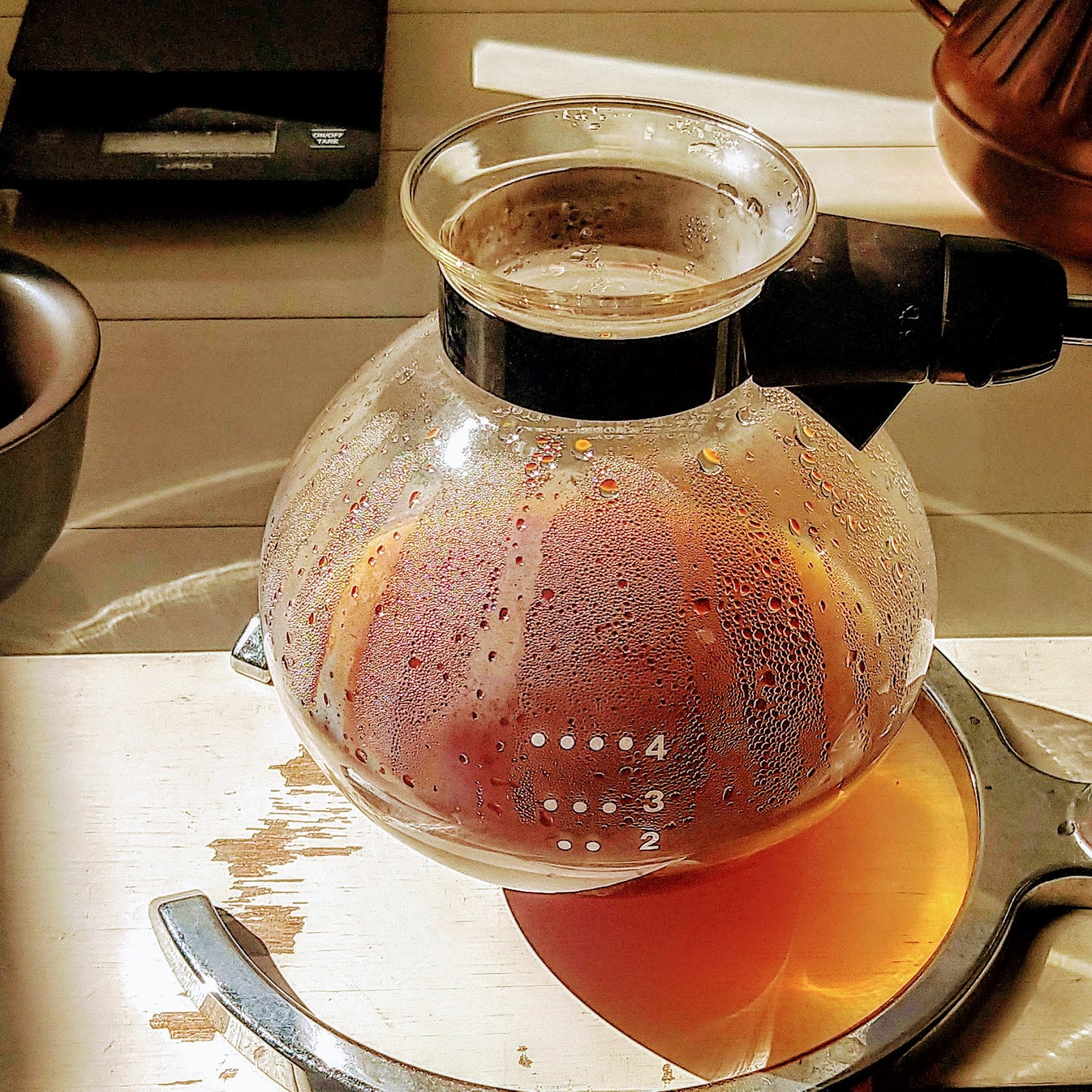 拿出塵封已久的賽鳳虹吸壺,肯亞AA,比手沖的溫度都還高,突然感覺有種燒焦味?
