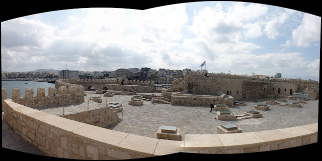 庫勒斯要塞,今天進去免費,看了不少的城堡內防禦工事,原始設計港口裡面還有海上市集,跟威尼斯的設計是一樣的,1204年十字軍東征被威尼斯佔領,1669年,奧圖曼土耳其從威尼斯人手中奪走了克里特島,1821年希臘獨立,都是戰事中心,原本穆斯林很多,一直到1924年的希臘、土耳其人口互換事件中穆斯林被迫離開。