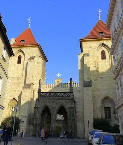到布拉格的天氣出奇的好,清晨有霧,中午就是藍天大太陽,除了在舊城區的胡斯廣場逛逛外,我們走到了查理士橋旁的克雷門特學院。