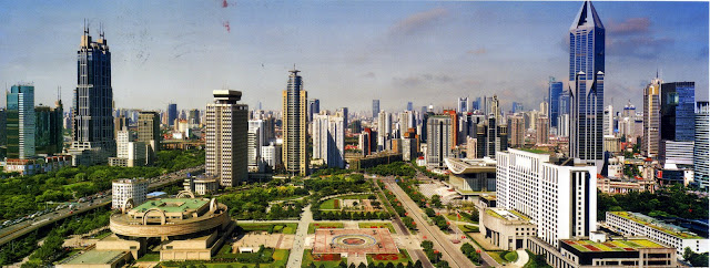 這是上海的人民廣場,周邊有市政府、戲劇院、公園與展覽館等公共設施,周邊的高架道路擠滿了車子,地鐵站出入都是人擠人,但是看這公園內的人很少。