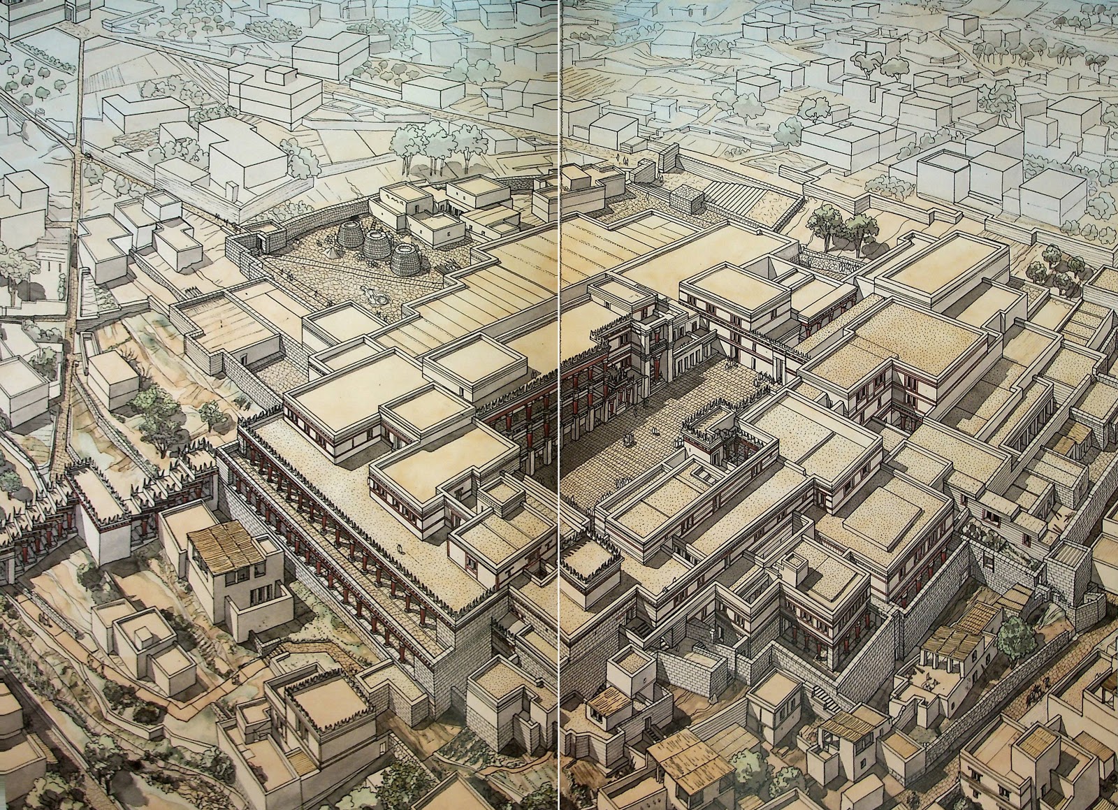 顏色那麼鮮豔,那麼多石頭,那麼大的陶罐,而且還有陶水管與排水溝,雨水(用水)與排水是分開的。但克里特島缺乏堅固的大石塊,所以可以發現每層樓並不是很高,用石頭與木材交替來防震,地面的雪花石也容易碎裂,大圓木柱的特色是上粗下細。
