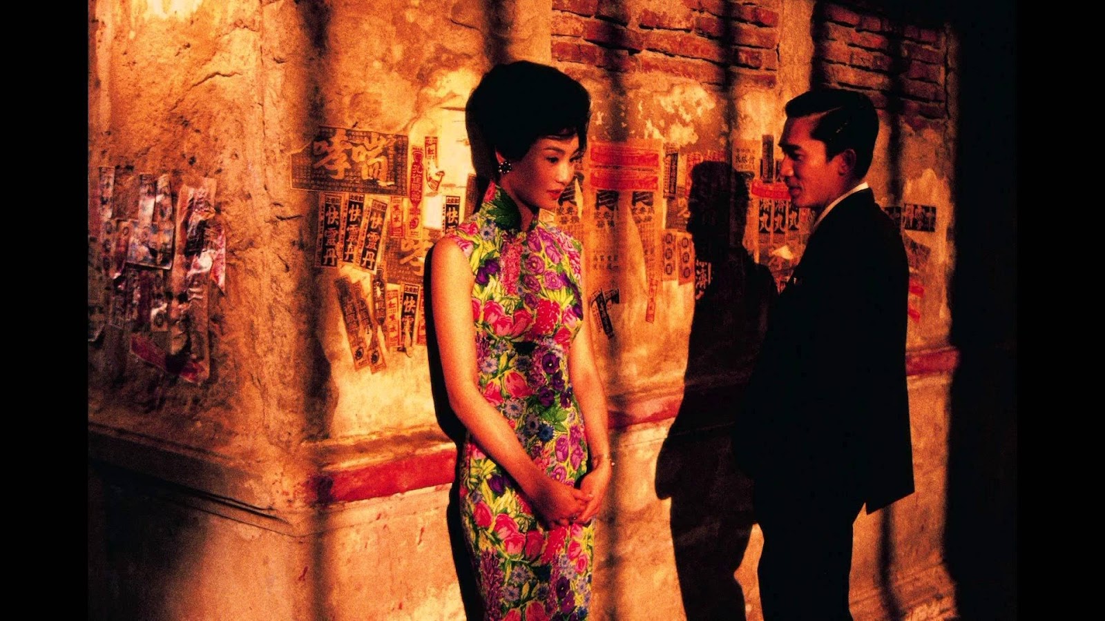 用中長鏡頭取景,只取一部分,這樣的鏡頭刻意的讓我們不知道全貌,彷彿以管窺天,我們反而最清楚最確定的劇情,是梁朝偉的太太與張曼玉的先生兩人出軌一起去日本旅行,但是這兩個人沒有露臉,電影中甚至沒有名字。
