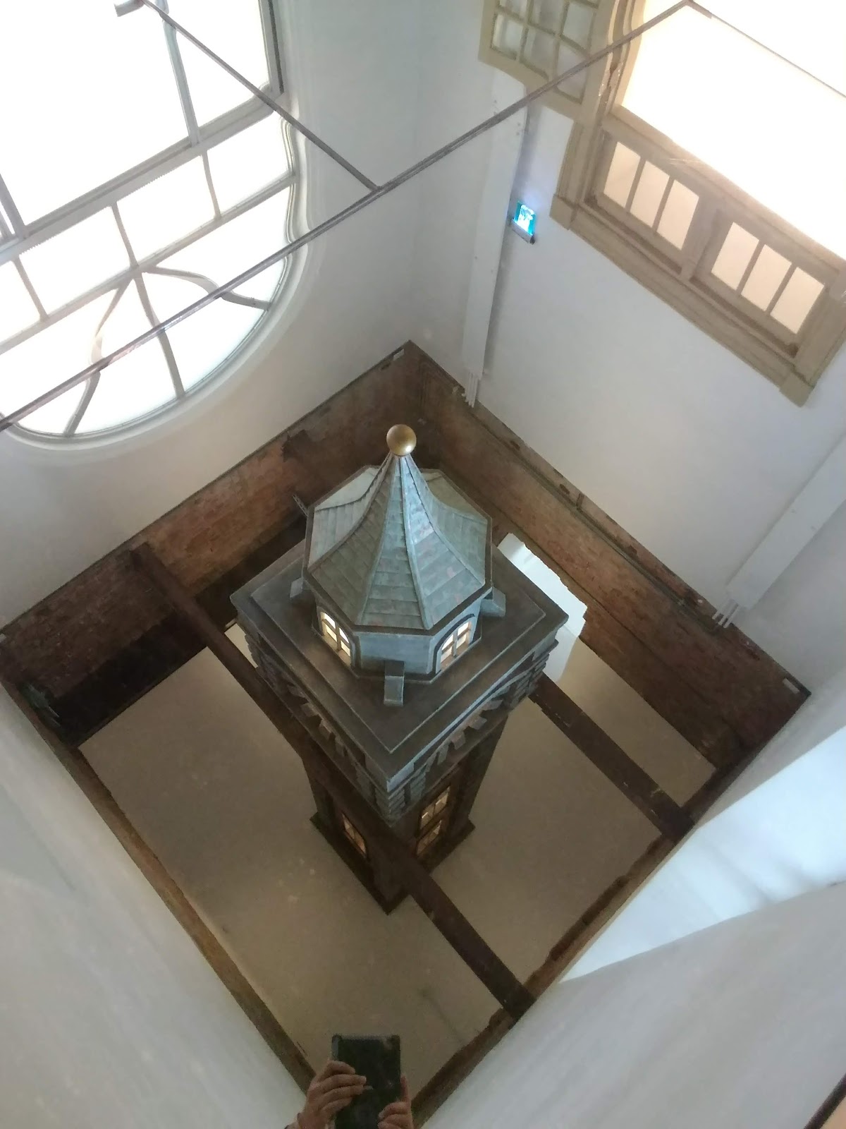 原台南地方法院,塔樓被拆了,但裏頭的一個倒置的塔樓,透過地上的鏡子來觀察,還蠻有意義。馬薩式的屋頂上有所謂的貓道,也很值得一探。