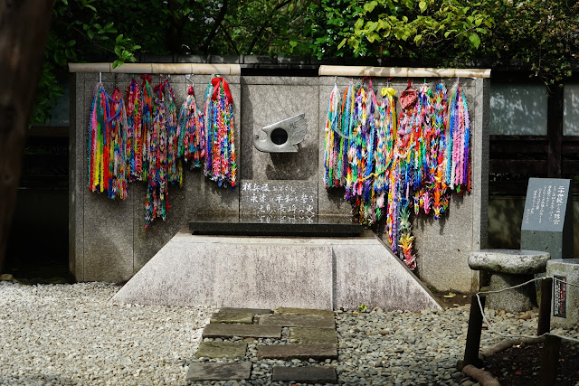 最有趣的是去社務所拿一張白紙,上面印有素盞嗚尊、稻田姬命,然後前往鏡池,要走入旁邊的佐久佐女森林,進入後雖然外面陽光逼人,但森林內彷彿另一個世界,我想是有高大的杉木形成的結界,看到小小的鏡池,然後可以把那張白紙放在水上,並且在上面放置10圓或100圓,白紙會浮現文字,等待幾分鐘,硬幣會把這張紙帶下去讓稻田姬命知道。