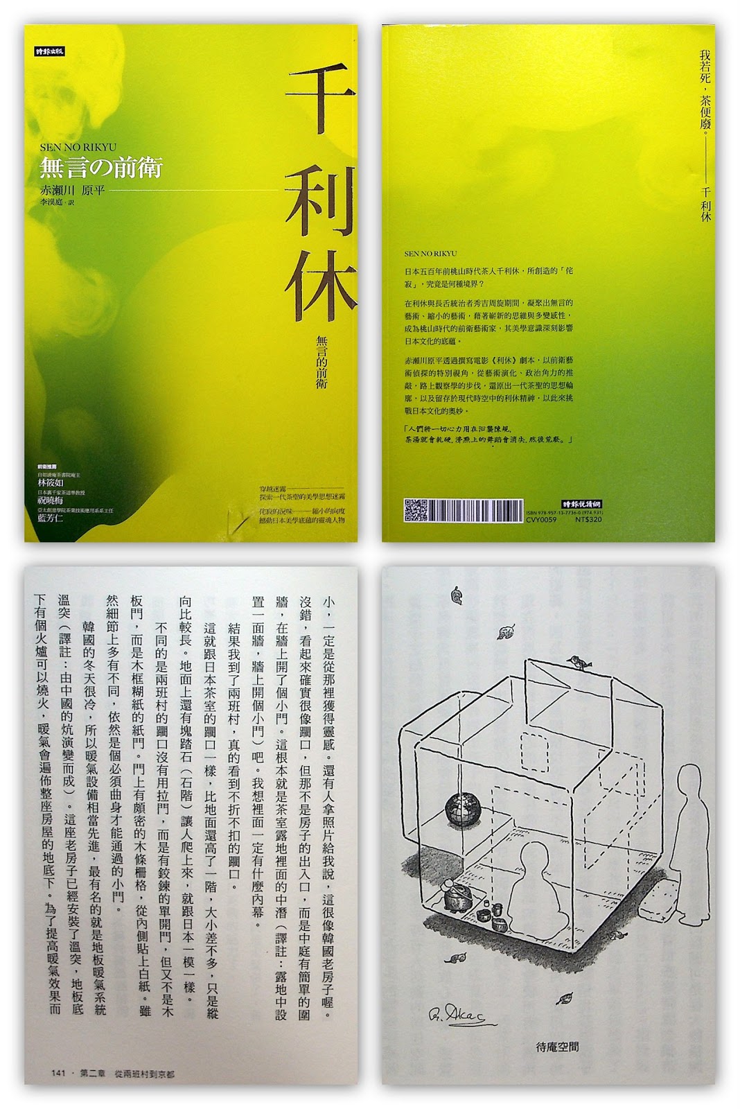 《日式茶室設計》比較像是學校理論書,很清楚的解構茶室,從歷史、格局、樣式、材料等方向細談,組合出茶室的樣貌。而《京都茶室名庭巡禮》就好像務實的參訪心得,把每一座名庭呈現給讀者,兩本書一起交錯閱讀,馬上就了解了茶室背後的故事。